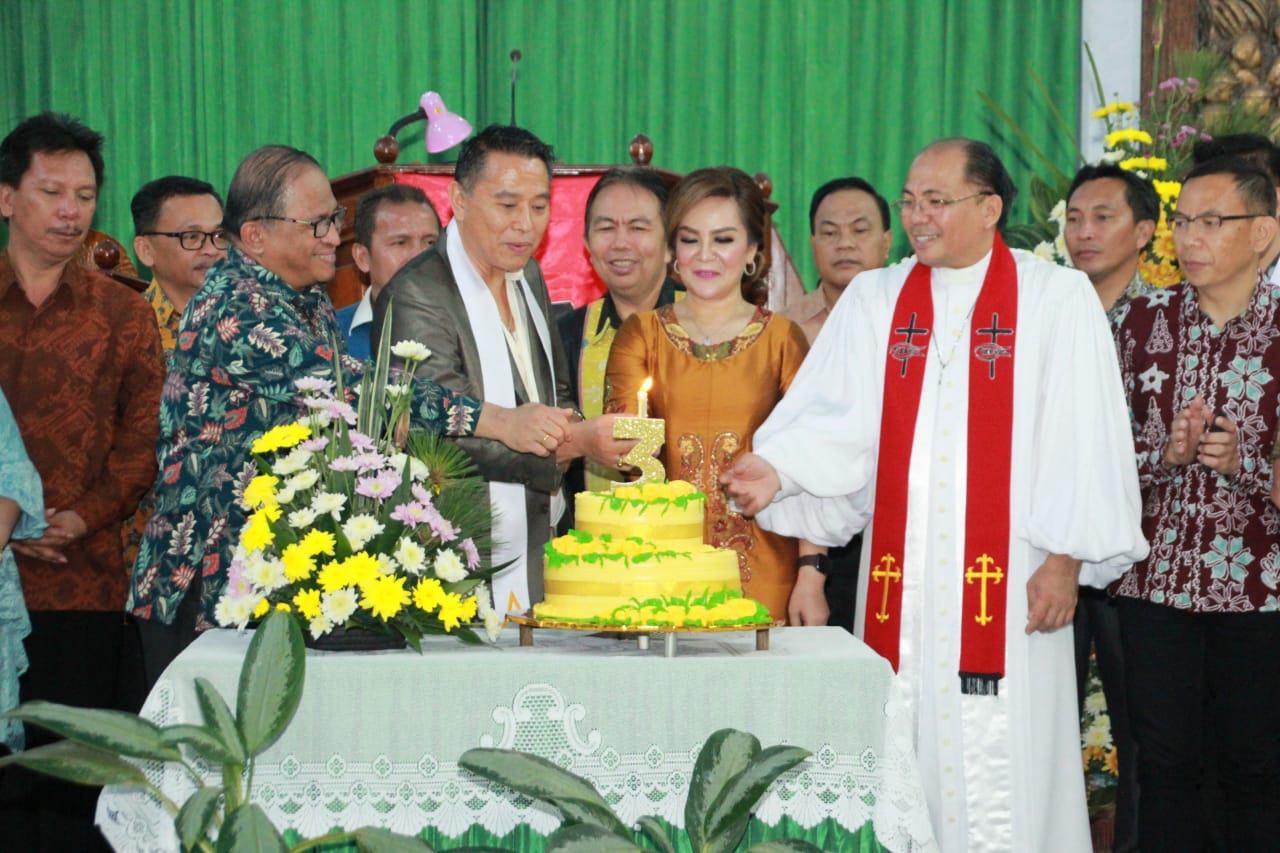 Ibadah Syukur Tiga Tahun Kepemimpinan EMAS bertempat di Gereja GMIM Maranatha Paslaten dalam ibadah Minggu Malam (17/2/19) dipimpin Sekertaris Departemen Misi dan Oikumene BPMS GMIM Pendeta Adolf Wenas MTh yang dalam khotbahnya mengingatkan untuk selalu mengandalkan Tuhan dalam segala hal dengan menaikkan pujian dan syukur atas semua berkatNya.