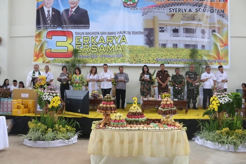 “Kita bersyukur atas segala prestasi yang dicapai sehingga Tomohon menjadi maju dan dikenal di kancah Nasional maupun Internasional. Ini semua berkat kerjasama juga dengan masyarakat Kota Tomohon yang tetap menopang kami untuk menjalankan pemerintahan EMAS,” ujar Eman.