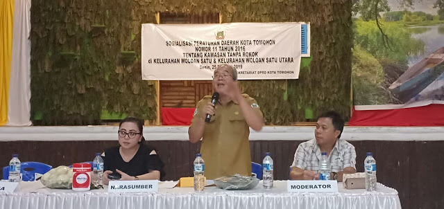 TOMOHON (wartasulut) – Sekretariat Dewan Perwakilan Rakyat Daerah (DPRD) kota Tomohon melaksanakan kegiatan Sosialisasi Peraturan Daerah Kota Tomohon Nomor 11 tahun 2016 tentang Kawasan Tanpa Rokok (KTR) di Kelurahan Woloan, Kecamatan Tomohon Barat, Senin (25/02/2019).