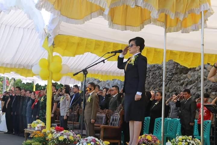 TOMOHON (wartasulut)—Wali Kota Tomohon Jimmy F Eman SE Ak CA diwakili Wakil Wali Kota Tomohon Syerly Adelyn Sompotan yang bertindak sebagai Inspektur Upacara, menghadiri peringatan Hari Guru Nasional tahun 2019, bertempat di Stadion Babe palar Tomohon, Senin (25/11/2019).