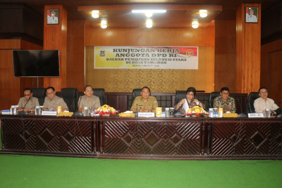 TOMOHON (wartasulut)—Wali Kota Tomohon Jimmy Feidie Eman SE Ak CA menghadiri kegiatan Kunjungan Kerja Anggota Dewan Perwakilan Daerah (DPD) Republik Indonesia (RI) Daerah Pemilihan Sulawesi Utara di Kota Tomohon, dilaksanakan di Kantor DPRD Kota Tomohon, Senin (9/03/2020).