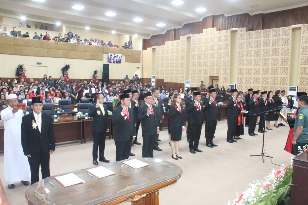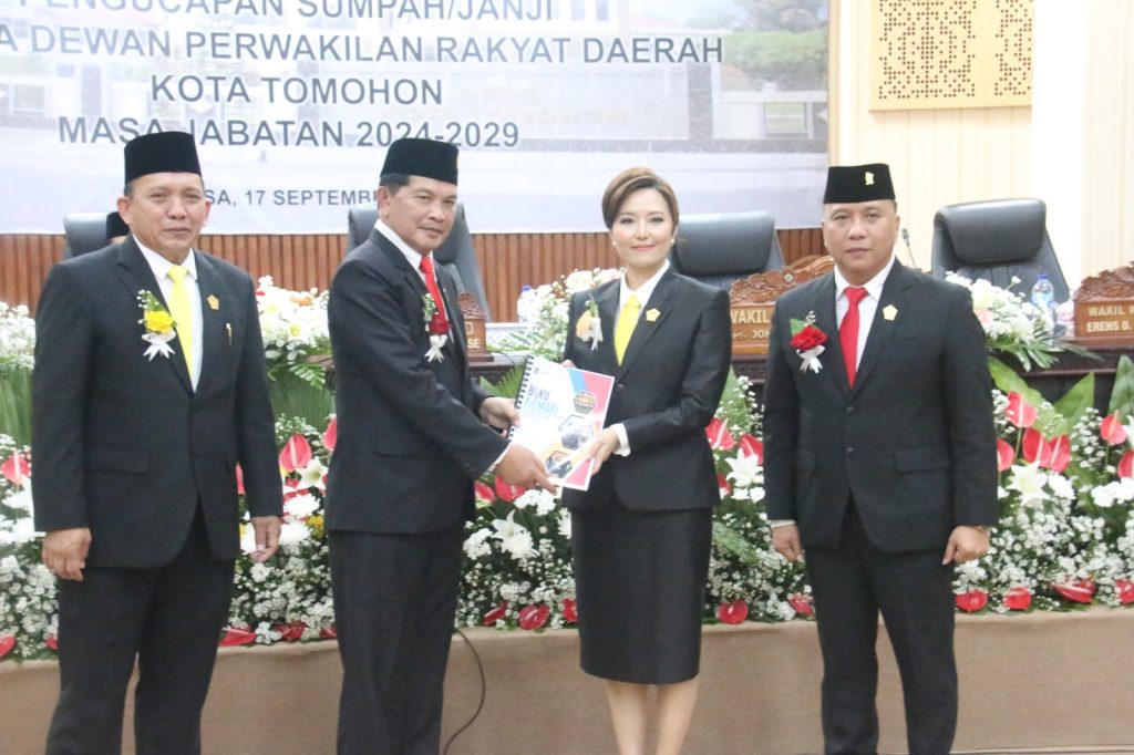 Pengucapan Sumpah/Janji 24 Anggota DPRD Kota Tomohon masa jabatan tahun 2024-2029, yang dilaksanakan di ruang sidang DPRD Kota Tomohon, Selasa (17/9/2024)