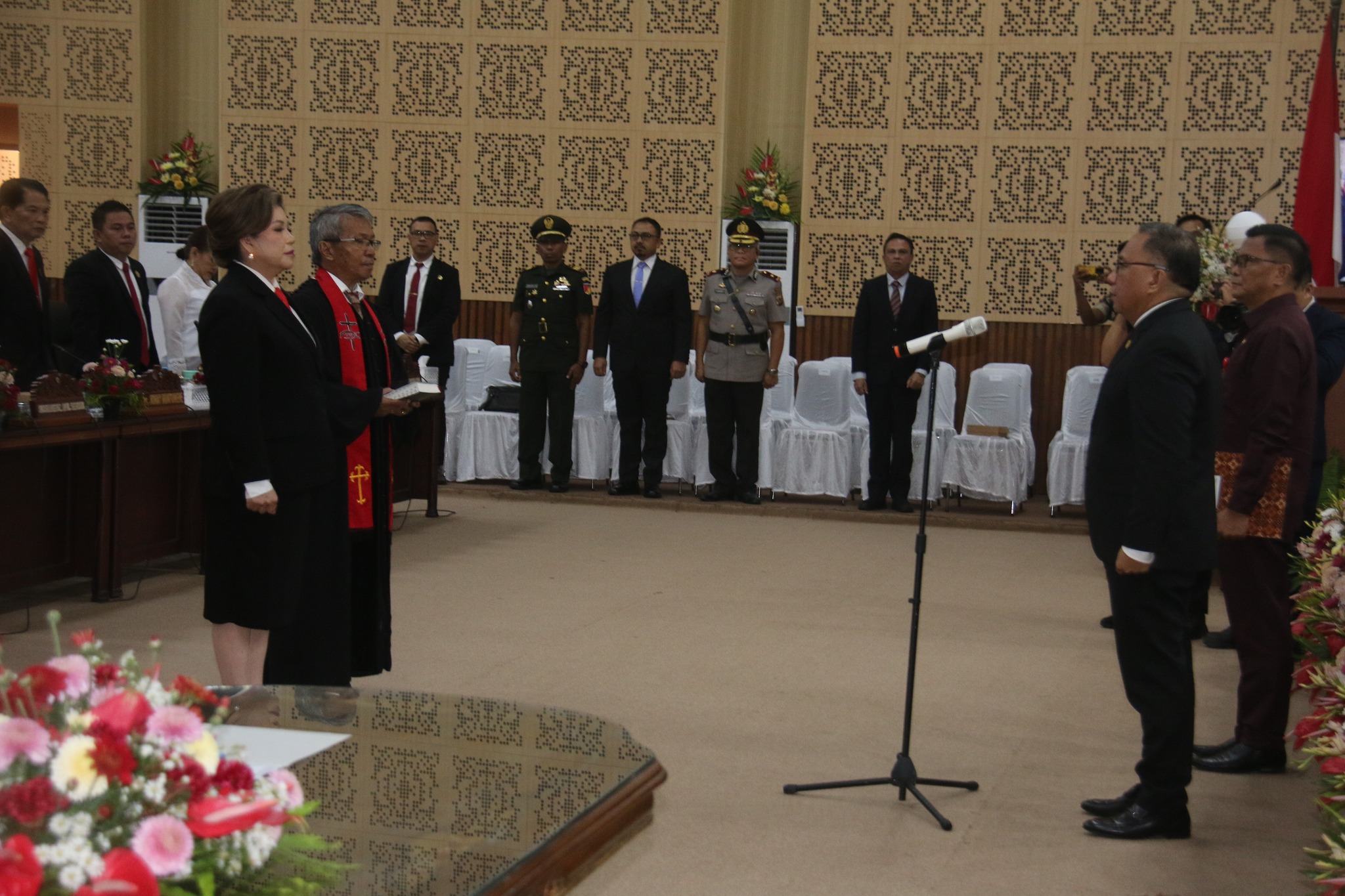 Pembacaan Surat Keputusan Gubernur Sulawesi oleh Sekretaris DPRD Kota Tomohon Steven A. Waworuntu, SSTP.,MAP . Pengucapan Sumpah/Janji Anggota Dewan Perwakilan Rakyat Daerah kota Tomohon Masa Jabatan 2024 – 2029 oleh Ketua DPRD Kota Tomohon Ferdinand Mono Turang, S.Sos dilanjutkan dengan Pengukuhan Oleh Rohaniawan. Sekaligus menandatangani berita Acara Sumpah/Janji, masing – masing oleh Anggota DPRD Vonny Mongdong, Rohaniawan dan Ketua DPRD Kota Tomohon, dilanjutkan dengan penyerahan Surat Keputusan yang diserahkan langsung oleh Walikota Tomohon Carrol Joram Azarias Senduk, SH dan Penyamatan Lencana oleh Ketua DPRD Kota Tomohon.