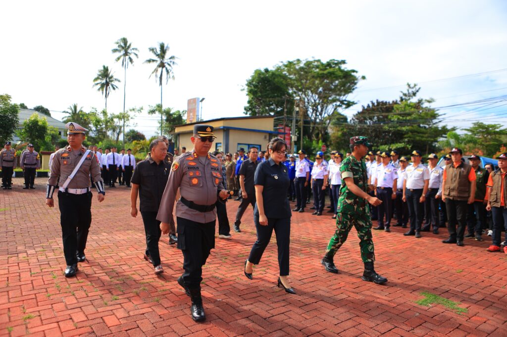 Kapolres Tomohon AKBP Nur Kholis, S.I.K. memimpin jalannya apel dan menegaskan pentingnya sinergi serta koordinasi antarinstansi guna memastikan situasi kamtibmas tetap aman, tertib, dan kondusif selama pelaksanaan festival.
