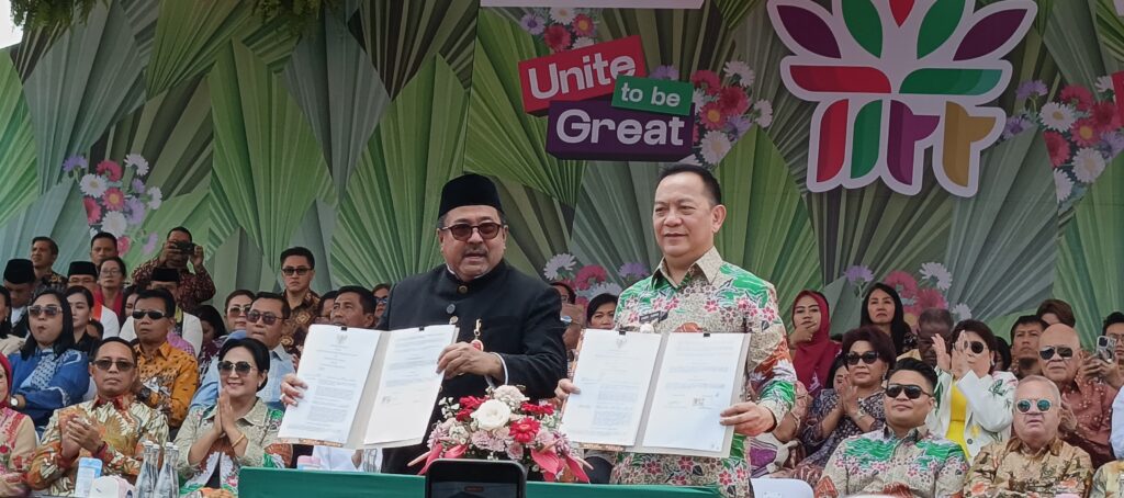 Kolaborasi ini ditandai dengan penandatanganan Memorandum of Understanding (MoU) diatas panggung utama TIFF 2025 dan disaksikan ribuan warga Tomohon yang datang berjubel di sekitar panggung utama, Sabtu (9/8/2025).