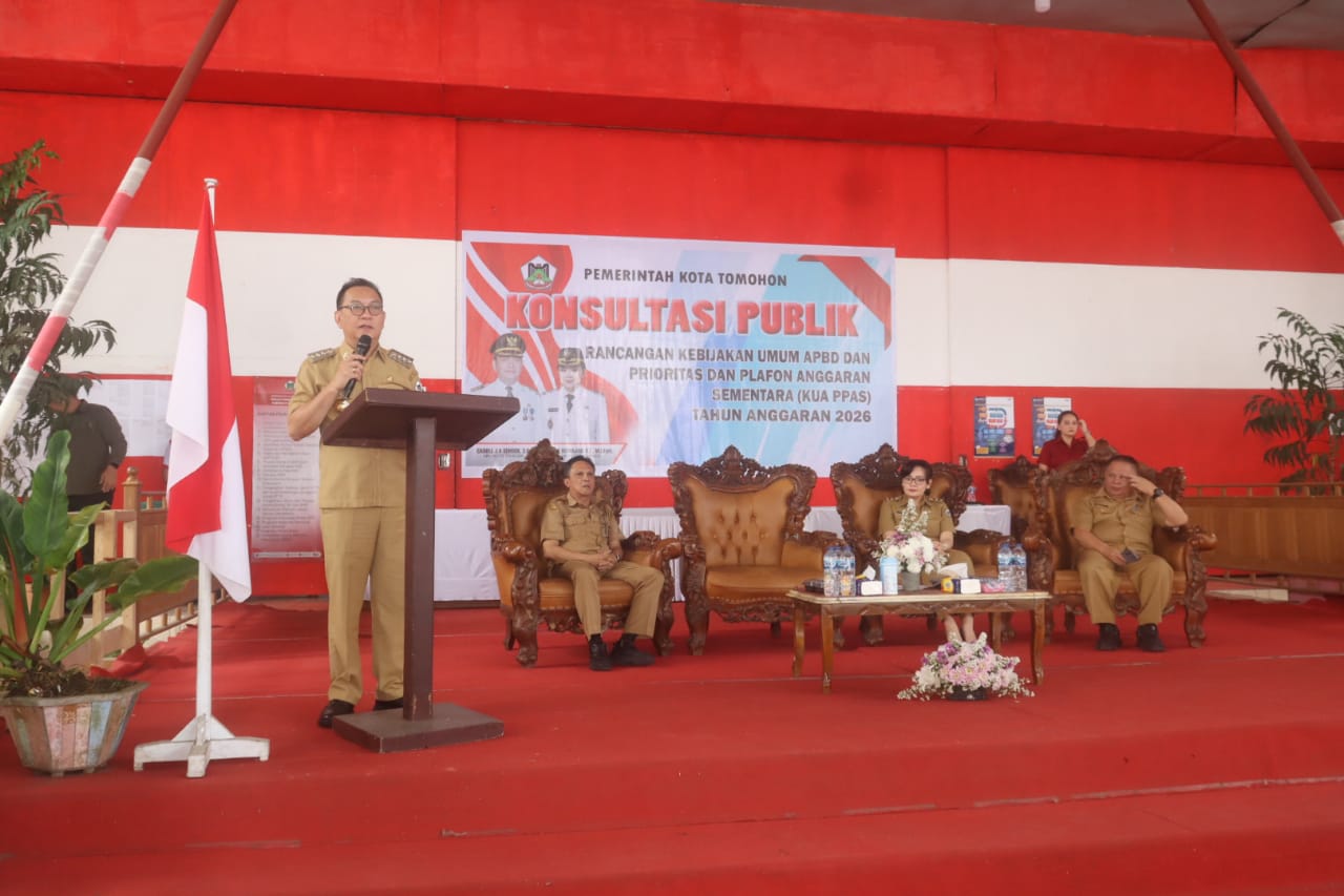 TOMOHON (wartasulut.co.id) — Pemerintah Kota (Pemkot) Tomohon melalui Badan Pengelolaan Keuangan dan Pendapatan Daerah (BPKPD) Kota Tomohon, melaksanakan Konsultasi Publik Rancangan Kebijakan Umum APBD dan Rancangan Prioritas dan Plafon Anggaran Sementara (KUA-PPAS) Kota Tomohon Tahun Anggaran 2026.