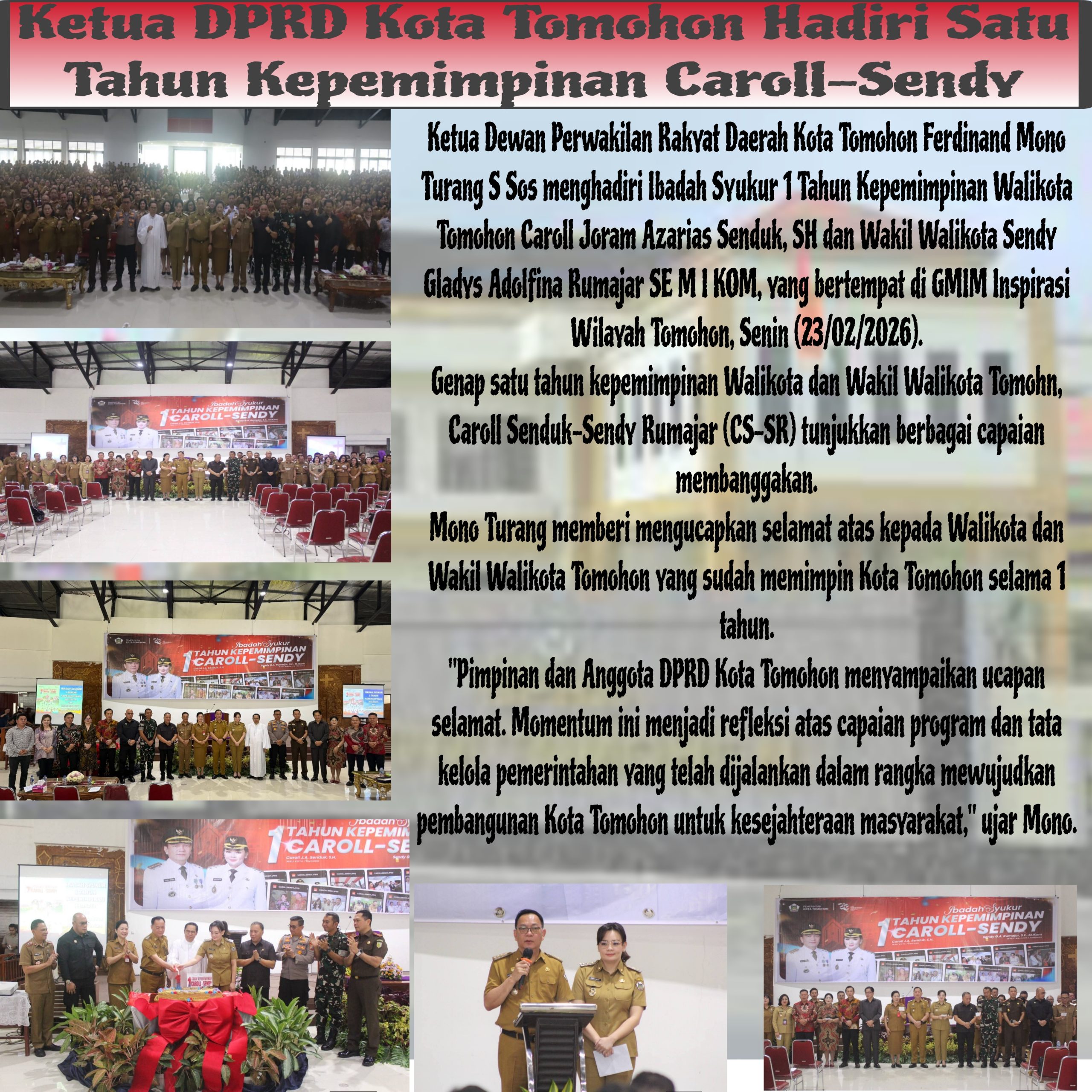 • Ketua DPRD Kota Tomohon Hadiri Satu Tahun Kepemimpinan Caroll-Sendy